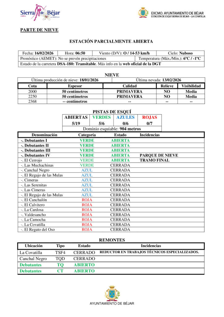 Parte de nieve y plano de pistas